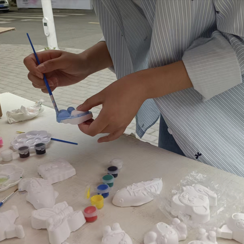 现场气氛热烈而专注,大家充分发挥想象力和创造力,将奇思妙想融入到石膏作品中。有的同学以自然元素为灵感,精心塑造出栩栩如生的花朵、灵动的小动物;有的同学则结合专业特色,创作出富有科技感的抽象造型;还有的同学将自己的情感与祝福倾注其中,制作出独特的纪念摆件。在创作过程中,同学们相互交流经验,分享创意,共同攻克技术难题,展现出良好的团队协作精神。经过数小时的精心雕琢,一件件充满个性与创意的石膏作品新鲜出炉。此次石膏创作活动不仅为同学们提供了一个展示自我、发挥创意的平台,更让大家在动手实践中感受到了传统工艺与现代艺术融合的魅力。参与活动的学生表示:“这次活动让我跳出了课本知识的局限,亲手将脑海中的想法变成实物,特别有成就感。过程中还交到了很多志同道合的朋友,收获满满!”