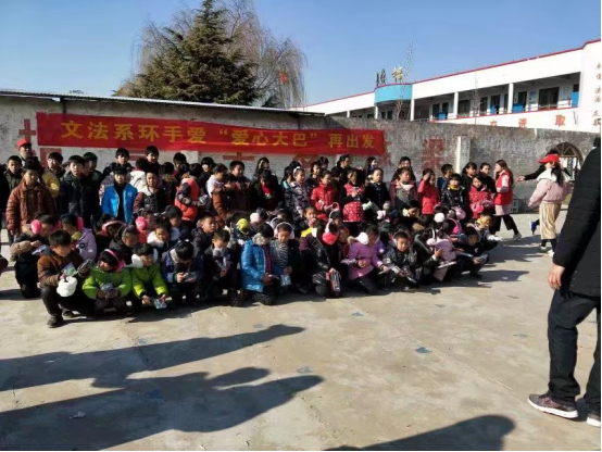 2017年12月21日,文法系环手爱青年志愿者服务队来到温县黄河办事处朱家村小学开展“爱心大巴再出发“活动。