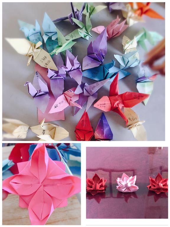 手工课讲的是折纸。孩子们聚精会神地学习每一步折法,认真聆听老师的每一句讲解,还不时地向老师提问。在师生互动中,增进了师生之间的感情,使留守儿童们感受到了老师们的关爱。一个多小时的手工课过去了,孩子们很快学会了折千纸鹤、爱心、荷花等等,看着自己亲手完成的手工作品,一张张小脸上绽放出甜美的微笑。孩子们不仅学会了折纸,还会学会了感恩和分享,他们将自己制作的手工作品,送给了自己的老师,并向老师表示感谢。