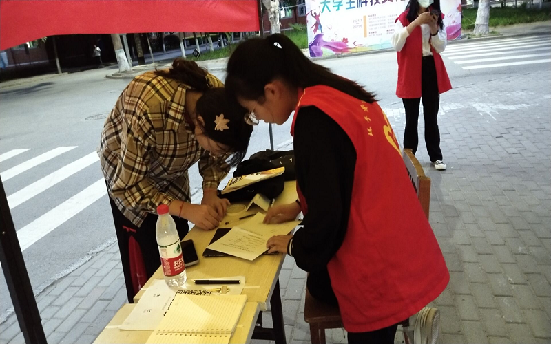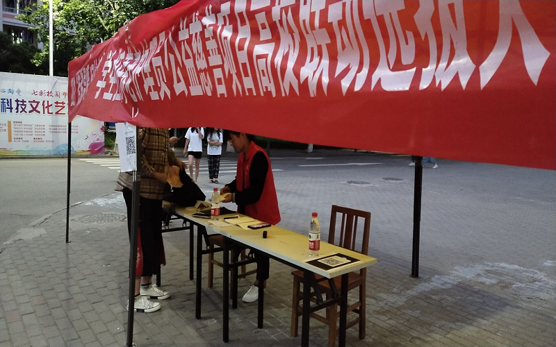 招募的第一天,对于搭建帐篷等一系列的准备工作,志愿者们积极主动,快速进行现场布置。帐篷内,环手爱青年志愿者服务队的值班人员热情洋溢。每当有人驻足帐篷前,值班人员就会热情地招呼,给他们介绍招募活动的详细情况,讲的既耐心又细致。天气炎热,帐篷遮挡不住那股闷劲儿,但志愿者们任劳任怨,依然自愿坚守在各自的工作岗位。大家表示:在这里值班,帮助来报名的人了解招募的详细情况都是自愿的,并觉得这项活动很有意义,不觉得炎热和辛苦。作为这项活动的志愿者,大家有责任完成这项假期实践活动的宣传招募工作,也把这项工作当成义不容辞的责任。