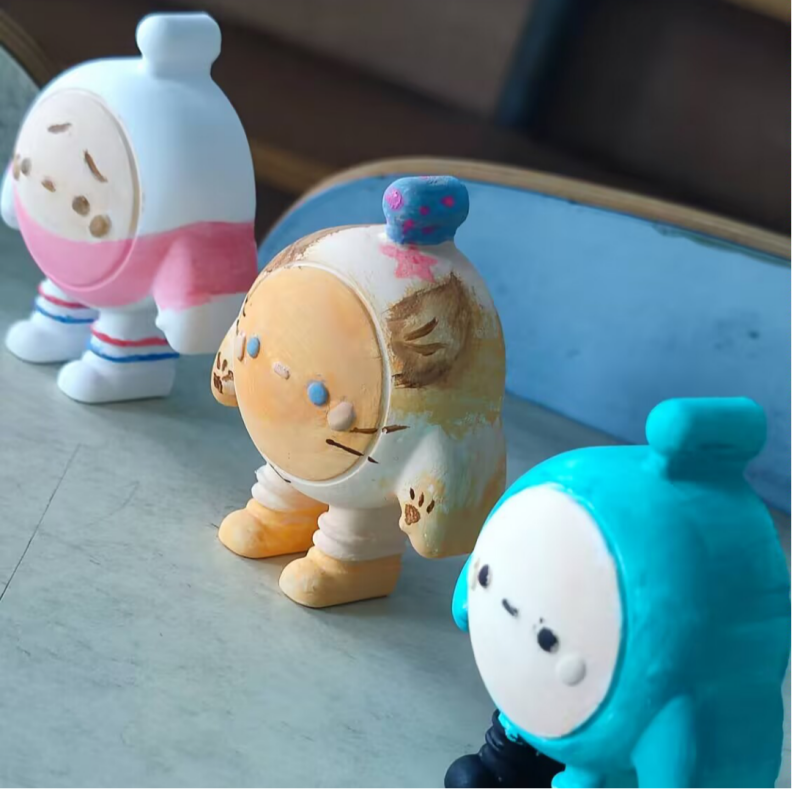 活动筹备阶段,心理部成员精心策划流程、采购全套材料,通过线上社群分享、线下海报宣传等多种形式广泛推广,吸引了众多同学踊跃报名参与。活动现场暖意融融,纯白的石膏娃娃整齐排列,各色颜料、画笔一应俱全。活动现场氛围热烈而温馨,纯白的石膏胚体、色彩斑斓的颜料与各式画笔整齐陈列,为同学们搭建起自由创作的天地。大家迅速投入状态,充分发挥想象力与创造力,将奇思妙想融入每一笔涂色中:有的同学以自然为灵感,用柔和色调勾勒出花朵簇拥的田园场景;有的同学紧扣潮流元素,用鲜明撞色打造出个性十足的卡通形象;还有的同学将内心的温柔与祝福倾注笔尖,绘出承载专属回忆的纪念摆件。创作过程中,同学们时而专注调色、细细勾勒,时而相互交流配色技巧,分享创意构思,遇到涂色难题时互帮互助,在轻松互动中拉近了距离,展现出良好的交流氛围与协作精神。经过数小时的精心描绘,原本朴素的石膏娃娃被赋予了独特灵魂,一件件充满个性与温度的作品新鲜出炉。