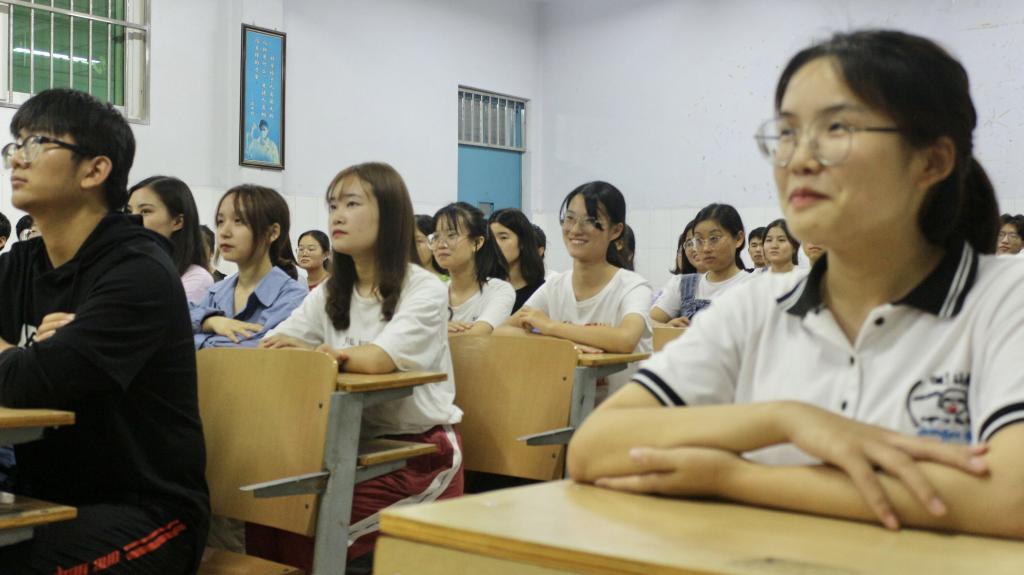为迎接建国七十周年,表达爱国之情,williamhill英国于9月10日晚在A栋教学楼开展“普通话诵七十华诞,规范字书爱国情怀”为主题的示范性团课。18级学生作为主讲,19级新生参与观摩。