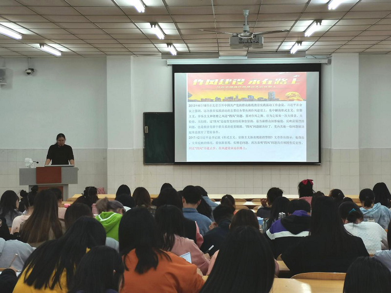 王院长从党风的概念、党风发展的历史、党风的重要性等方面出发,结合大量生活现象,系统而翔实地向在座同学介绍了树立和坚守正确党风的重要性。她强调,党的作风是党组织和党员在政治、思想、工作和生活等方面表现出来的较稳定的言行规范,关系着党的生死存亡,它具体体现在思想作风、学风、工作作风、领导作风及干部生活作风等方面。最后,王院长要求广大入党积极分子要发挥先锋模范作用,遵守课堂纪律,牢记为中华民族谋复兴的使命,争做德才兼备的新青年。