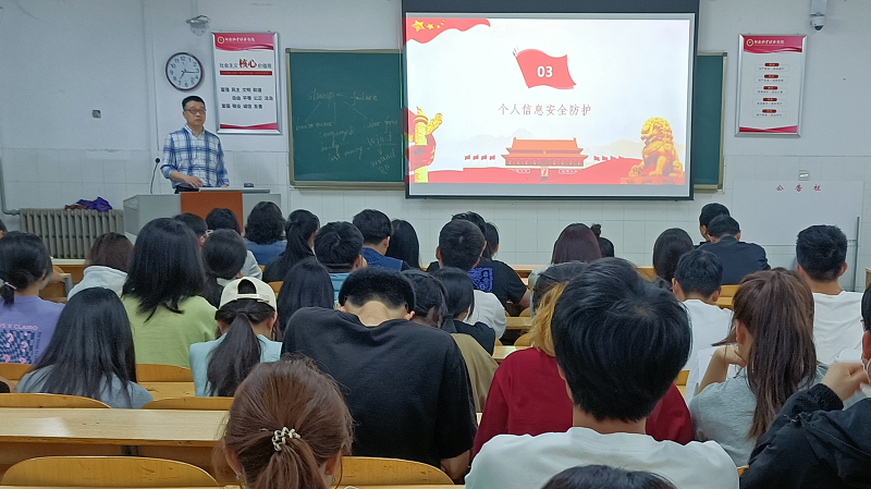 郭秀峰老师从国家安全、信息泄露、网络安全、文明上网等四个方面,理论联系实际,通过大量的案例阐述了当前高校网络安全面临的严峻形势,重点讲解了密码设置、支付安全防护、个人信息保护、国家反诈中心APP的安装和使用等。此次讲座深入浅出,具有较强的针对性、实用性和可操作性,进一步引导学生树立网络安全防范意识,保护个人信息安全,共同抵制有害网络信息。精彩的讲解、生动的语言赢得了在场师生的阵阵掌声。