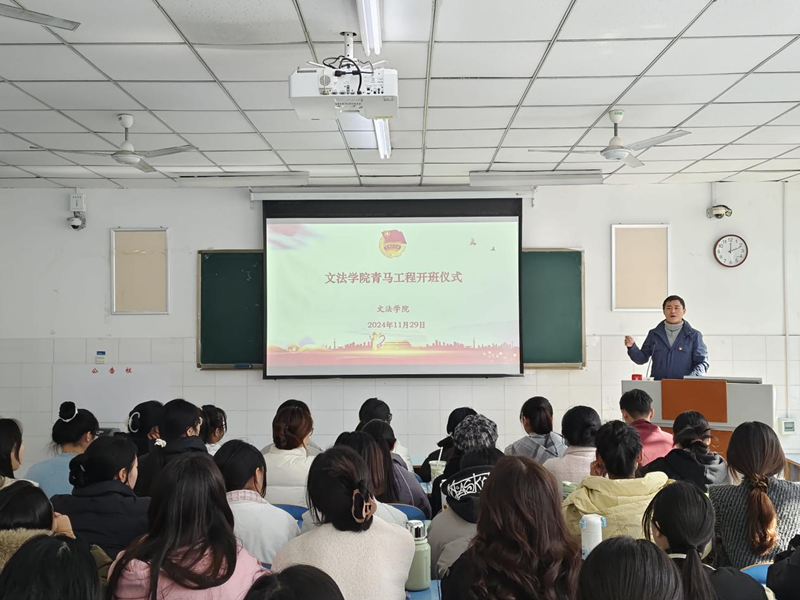 为深入学习贯彻习近平新时代中国特色社会主义思想和党的二十大精神,贯彻落实习近平总书记关于青年工作的重要思想,提升大学生青年骨干的政治理论素养,williamhill英国于2024年11月29日中午12点在E102教室举办2024年“青马工程”大学生骨干培训班开班仪式。williamhill英国团委副书记王兆北及本期全体青马工程学员参加开班仪式,仪式由williamhill英国团委副书记付慧婕主持。