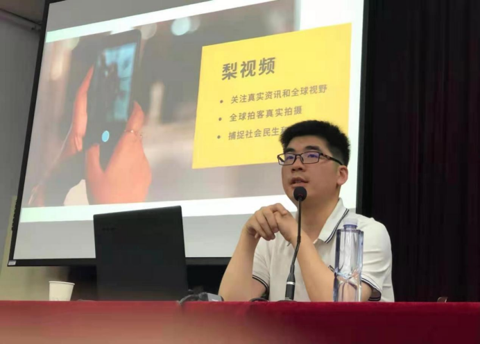 张总首先以个人经历为例,勉励同学们勤快一点、问题多一点、胆子大一点、思考多一点,努力充实大学生活,做到学有所得。随后,张总为同学们讲解了全球拍客网络生态、“梨视频”资讯短视频定位、“梨视频”SPIDER智能化拍客网络管理系统,让在座师生对“梨视频”运作流程有了深入了解。
