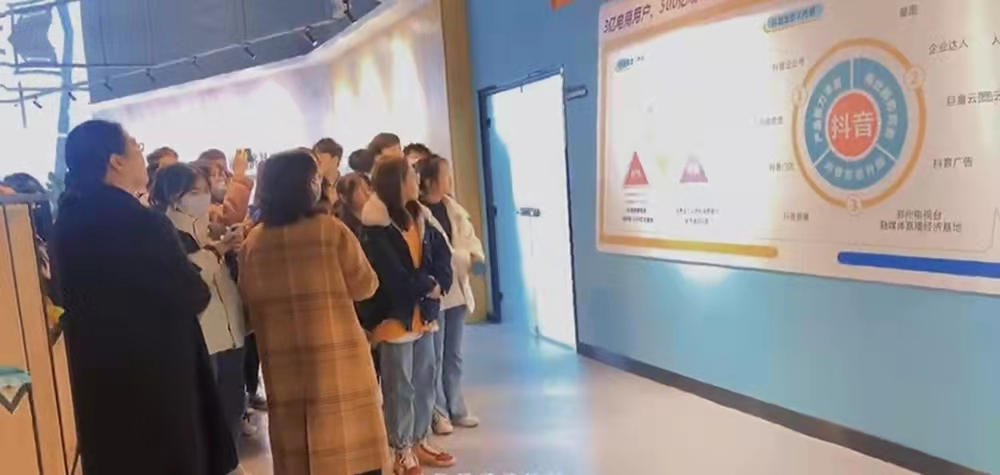 实践活动中,基地负责人商小平女士带领师生进行参观,使师生深入了解基地的发展历程、发展规划、业务特点、文化氛围及运营模式,并直观感受直播带货一线的工作状态和工作流程。参观完毕后,基地总负责人郭甜女士为师生做了“抖音直播超级运营方案”的主题讲座,使学生了解了直播行业未来的发展趋势以及抖音平台数据分析的方法,并对抖音直播经典案例进行了分享与交流。讲座中,我院学生大胆提问、积极互动,充分展现了学生的专业素养与专业风采。