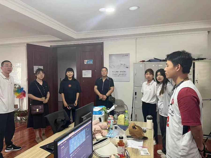 为加强对学院顶岗实习工作的管理,确保学生暑期集中实习质量, 7月20日上午,williamhill英国副院长王伟琴、魏景霞及网络与新媒体专业教研室主任苏颜军、骨干教师马汇一行人先后赴河南合众汇金实业有限公司旗下的河南音量文化传播有限公司、河南南华千牧生物科技有限公司看望williamhill英国网络与新媒体专业部分暑期实习生。
