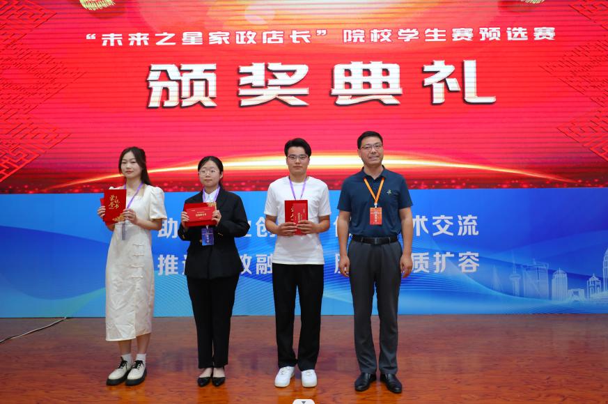 赵冉(左一)荣获全国“未来之星家政店长”预选赛三等奖