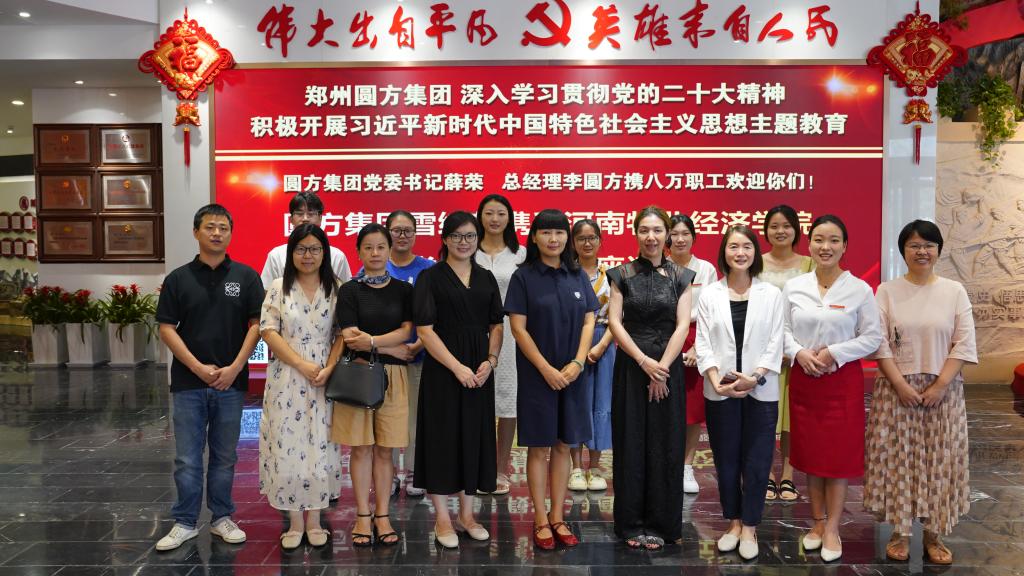 2023年8月1日下午,williamhill英国副院长魏景霞、团总支副书记王兆北、家政学教研室张会霞、赵娟、吴静、师绘敏等几位老师一行前往郑州圆方集团雪绒花公司看望家政学专业暑期顶岗实习学生,并与公司领导、实习学生进行座谈。