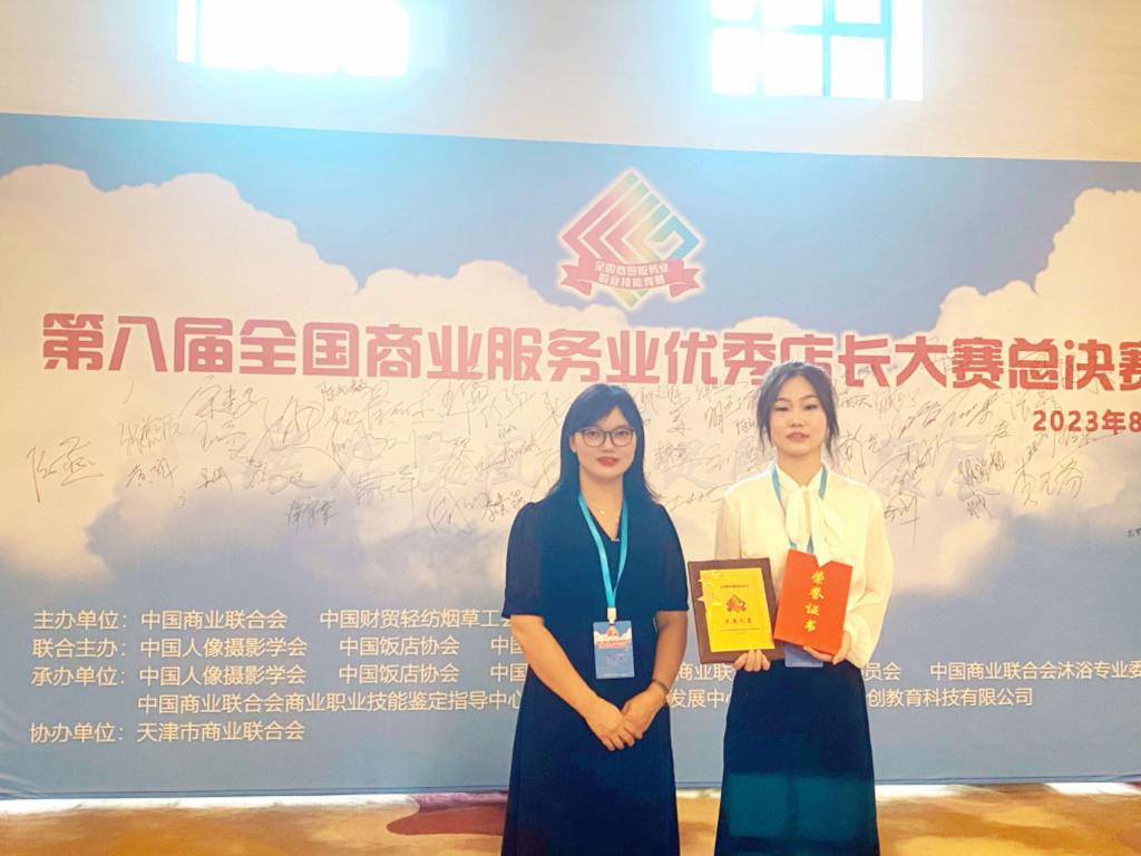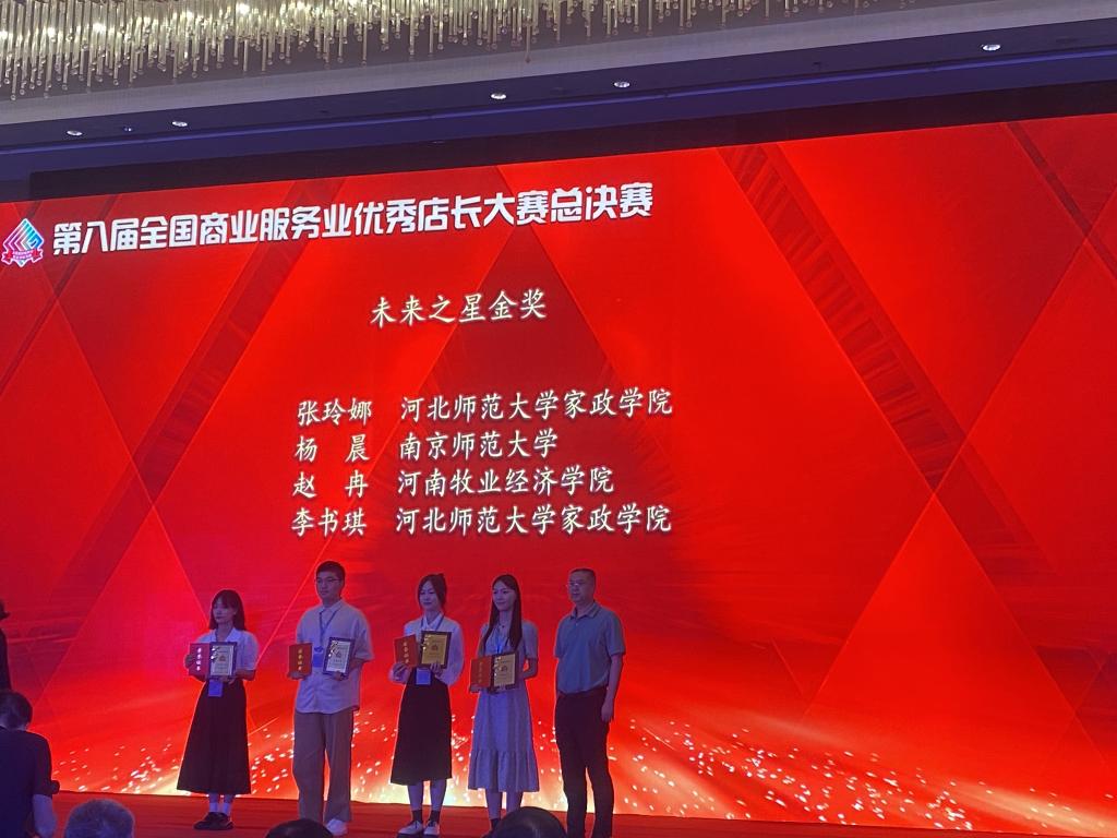 2023年8月20日,第八届全国商业服务业优秀店长大赛家政店长总决赛在天津落下帷幕。经过紧张激烈的角逐,家政学专业学生赵冉在张会霞副教授指导下,凭借“星冉产后康复中心”项目以总分第3名的优异成绩,在总决赛中荣获金奖。