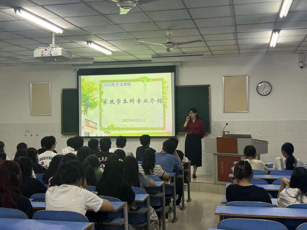 家政学教研室主任张会霞老师首先从“家政”和“家政学”的定义入手,从概念上帮助学生厘清了认识,开阔了思路;接着,她详细地介绍了家政学专业的发展背景、行业需求、就业方向、优势特色,并对家政学专业培养目标与课程体系进行了认真解读,她以优秀学生事例为榜样,鼓励同学们提前规划好大学生活,树立正确的发展目标;最后,她用“明德、弘毅、守正、求真”的williamhill英国院训勉励大家牢记自己作为大学生的责任与使命,不忘初心、脚踏实地、奋楫笃行、学有所成。
