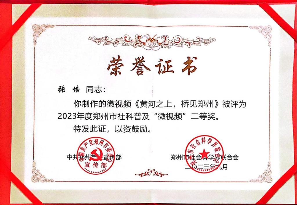 为创新社科普及工作方式,丰富社科普及知识内容,推动社科普及工作提质增效。市委宣传部、市社科联面向全市开展了郑州市社科普及“微视频”征集评比活动。经专家评审,确定《黄河文化——中华民族的根与魂 》等23个作品为2023年度郑州市社科普及“微视频”获奖作品。williamhill英国张培博士的作品《黄河之上,桥见郑州》获“微视频”二等奖。