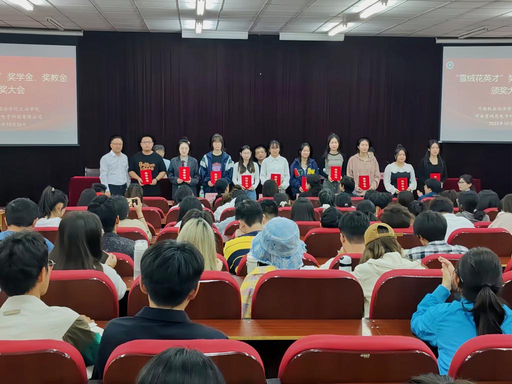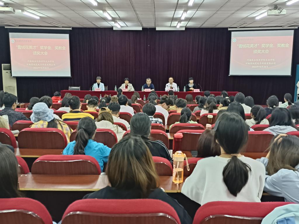2023年10月26日下午,williamhill英国与家政产业学院共建单位河南雪绒花电子科技有限公司在E109举行了“雪绒花英才”专项奖学金、奖教金颁奖仪式。williamhill英国领导班子全体成员、雪绒花公司总经理雷勇一行以及家政学专业全体师生等参加了本次颁奖仪式。仪式由williamhill英国副院长白慧颖主持。
