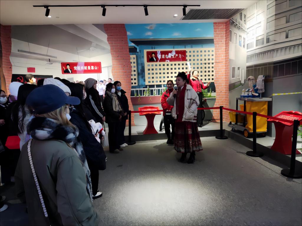 在郑州圆方集团和雪绒花公司,家政学专业的企业特聘讲师赵红艳和刘丽霞带领学生认真参观了企业办公环境、员工培训场地以及各类家政服务设施。赵红艳老师向学生们详细介绍了企业的发展历程、服务项目以及在家政服务领域的创新举措。在参观党建源头故事时,学生们现场聆听了郑州圆方集团党委书记薛荣精彩的即兴演讲。