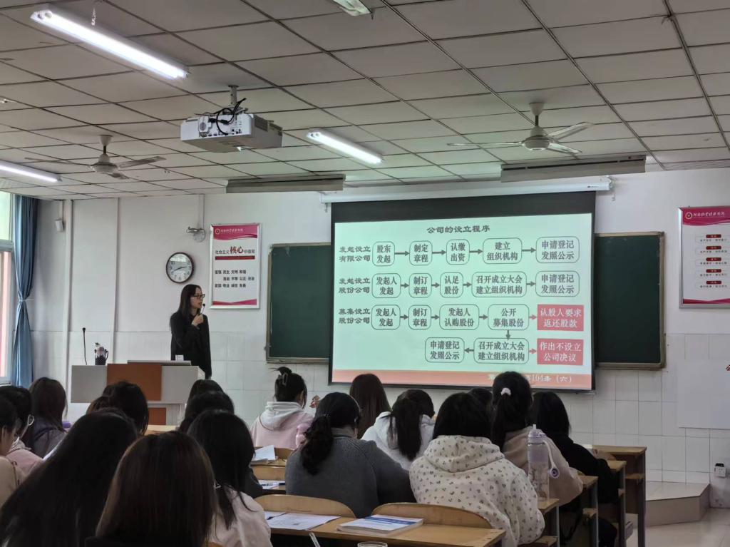 本次观摩课的授课对象是22财务管理01班,教学内容是公司法。王喜迎老师从公司基本原理解析开始,结合学生的专业讲解了公司基本法律制度,重点讲授了公司资本制度。通过公司法的立法背景与修改历史的介绍、结合恰当的案例、例题与财务会计知识,王喜迎老师使抽象的法律概念与法律规则变得通俗易懂。课堂上学生听讲认真,互动性好。课后,参加本次观摩课的老师进行了现场评议,大家一致认为,王喜迎老师的课教学设计合理、授课思路清晰、逻辑缜密、重点突出、课件简明易懂,是一堂高质量的教学观摩课,参加观摩课的老师受益匪浅。