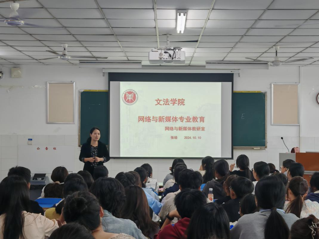 在E306教室,网络与新媒体教研室主任张培博士,为2024级网络媒体01班和网络媒体(网络传播)01、02班三个班的新生们带来了一场精彩纷呈的报告。张老师首先向新生们介绍了网络与新媒体专业的历史发展,通过生动的案例和详实的数据,展示了专业在社会进步和信息传播中的重要地位。接着,张老师详细解读了2024版网络与新媒体、网络与新媒体(网络传播)专业人才培养方案。她强调,新的人才培养方案注重理论与实践相结合,旨在培养具备扎实理论基础、熟练掌握新媒体技术和良好创新思维能力的复合型人才。张老师还介绍了课程设置、实践教学、实习实训等方面的具体安排,让新生们对大学四年的学习有了更加清晰的认识,给新生们提出了许多宝贵的意见和建议。