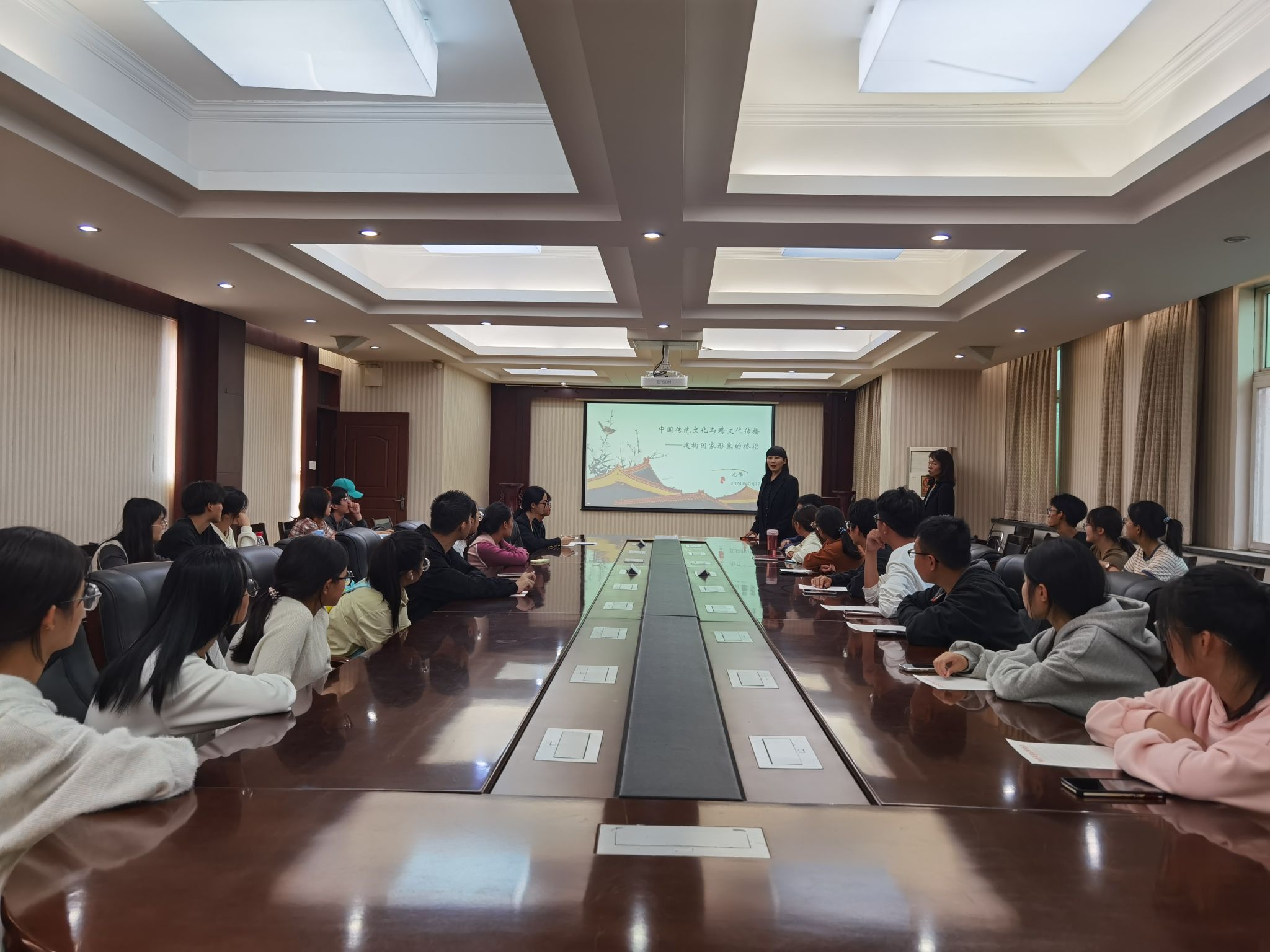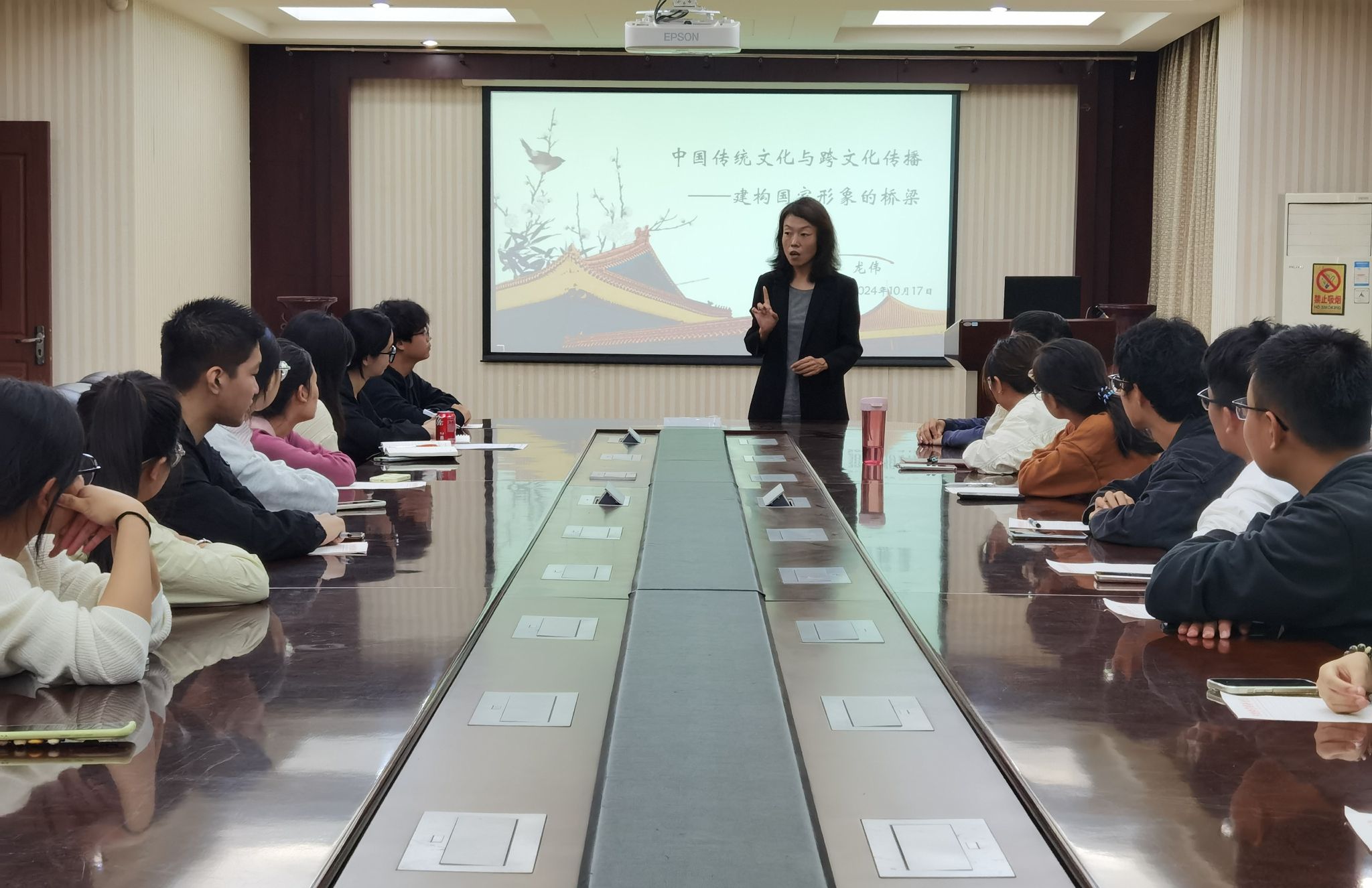 魏景霞副院长首先介绍了传播学学术训练系列讲座开设的初衷、传播学团队教师指导学生进行学术训练取得的成果、下步打算及龙伟老师前期在跨文化传播方面的学术成就。接下来,龙伟老师从中国传统文化概述、跨文化传播的重要性、国家形象构建的阶段、中国传统文化在国家形象中的作用、跨文化传播在国家形象中的作用等几个层次,引导学生系统认识中国传统文化跨文化传播与国家形象建构的密切关系,并结合《黑神话.悟空》的典型案例,分析在智媒时代,优秀的传统文化要实现成功的跨文化传播需要具备的传播要素及其对国家形象建构的重要影响。最后,龙伟老师结合案例,带领学生对我国传统文化跨文化传播现状及未来发展进行总结与展望,对我国文化安全风险及应对策略进行了深刻反思与探讨,讲座在同学们的热烈讨论中结束。