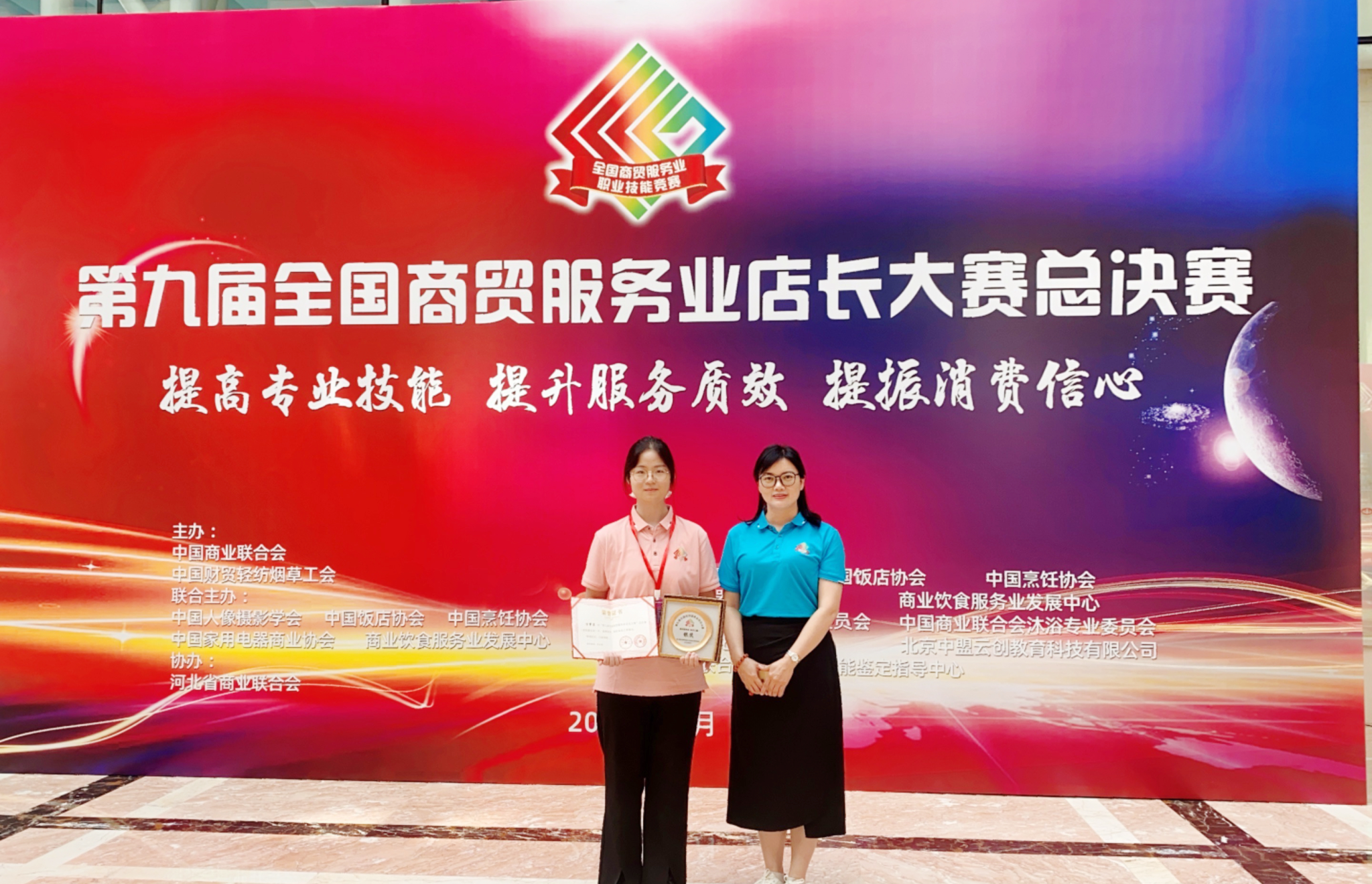 8月15日至17日,第九届全国商贸服务业店长大赛总决赛在石家庄隆重举行。经过紧张激烈的角逐,我校2022级家政学专业学生方梦菲凭借出色的表现获得家政服务业学生竞赛组(未来之星)银奖,为学校赢得荣誉。