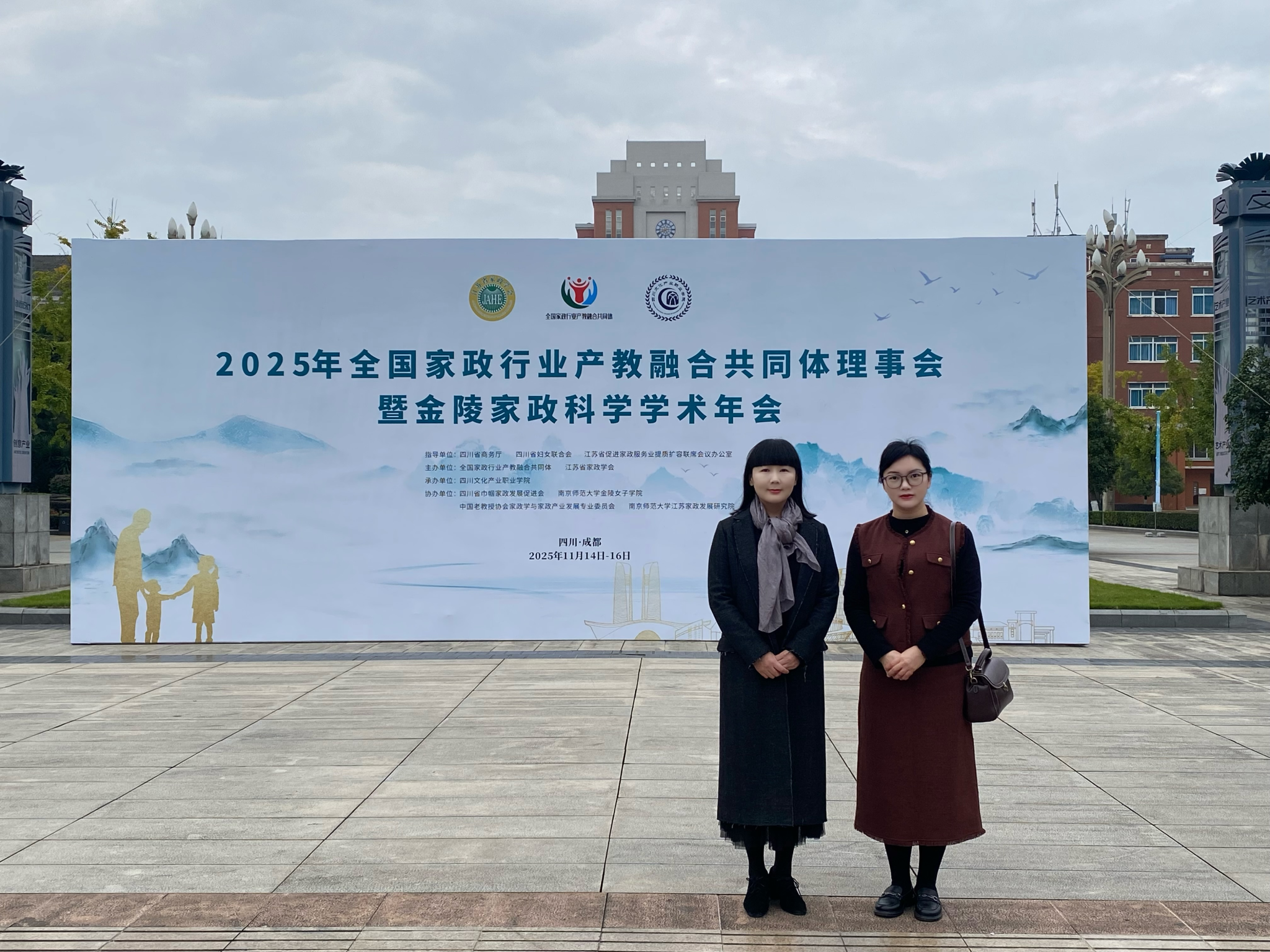 2025年11月14日至16日,以“聚焦一老一小,构建家政高质量发展新生态”为主题的“2025年全国家政行业产教融合共同体理事会暨金陵家政科学学术年会”在四川文化产业职业学院顺利召开。本次会议由全国家政行业产教融合共同体、江苏省家政学会联合主办,四川省商务厅、四川省妇女联合会、江苏省促进家政服务业提质扩容联席会议办公室提供指导支持。作为该共同体副理事长单位,我校williamhill英国副院长魏景霞、家政学教研室主任张会霞受邀出席会议。