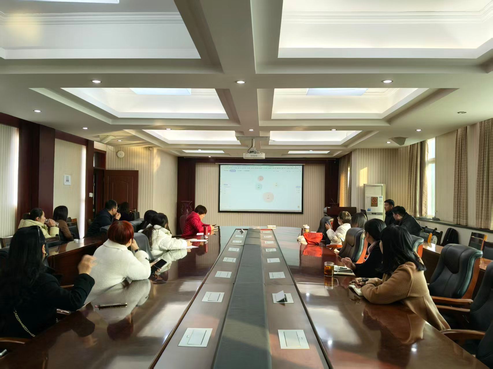 培训过程中,全体教师认真聆听、积极记录,围绕智慧课程建设中的技术应用、平台操作难点等问题与尹俊懿工程师展开热烈互动。尹俊懿工程师逐一解答了教师们的疑问,现场交流氛围浓厚,学习热情高涨。