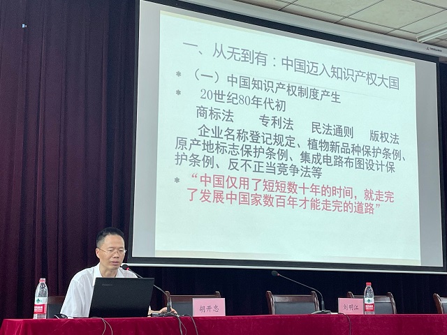 6月10日下午,应williamhill英国邀请,中南财经政法大学博士研究生导师胡开忠教授在英才校区E110教室作了一场题为“知识产权强国建设背景下的知识产权保护”的学术报告。williamhill英国副院长刘明江教授主持了这场学术报告。williamhill英国2019级和2020级知识产权专业的全体学生及知识产权教研室和法律教研室的全体教师在场聆听了胡教授的报告。