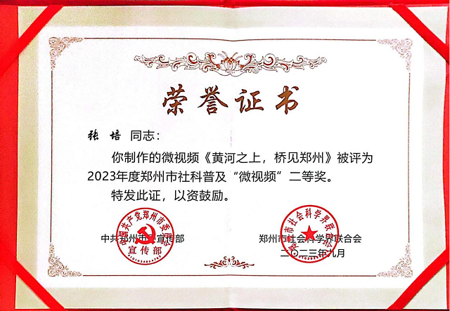我院张培博士作品喜获2023年度郑州社科普及“微视频”评比二等奖