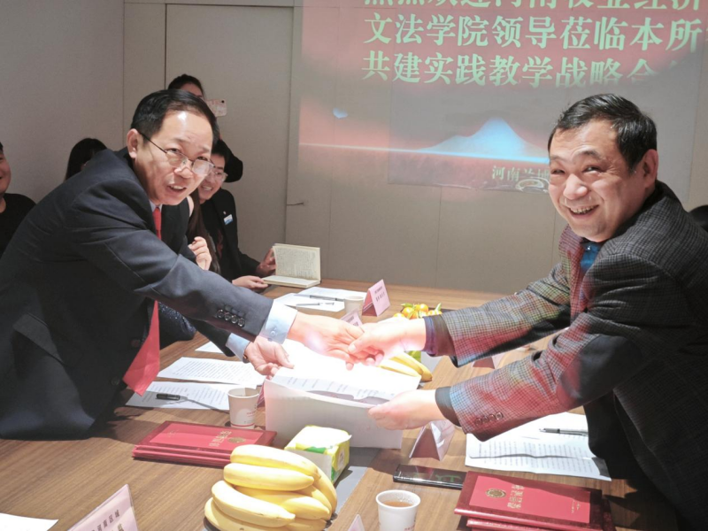 2023年12月29日下午,williamhill英国党委书记胡红林、副院长魏景霞、知识产权教研室主任段倩、公共法学教研室主任杨志民一行前往河南兰博律师事务所进行考察,举行了校企合作协议签约、挂牌暨客座教授聘任仪式。