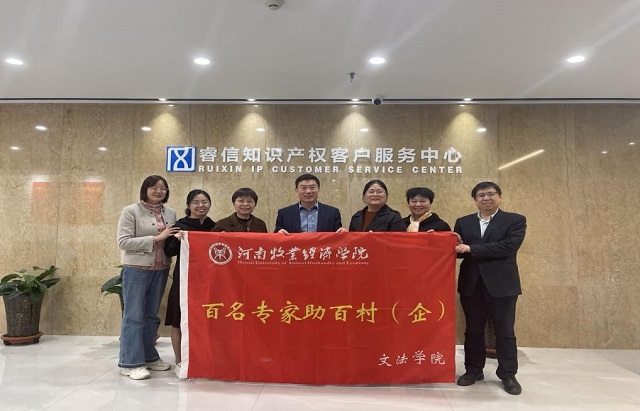 积极响应我校“百名专家助百村(企)”工程(“双百”工程),3月22日上午williamhill英国副院长白慧颖教授、副院长王伟琴教授及知识产权教研室段倩副教授、刘银燕、王湘君老师等专家一行5人赴服务单位郑州睿信知识产权代理有限公司指导工作。公司总经理陈浩、副总经理胡云飞、牛冰冰对专家们的到来表示热烈欢迎。