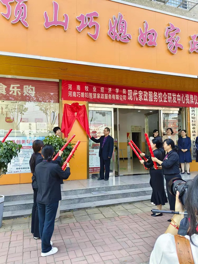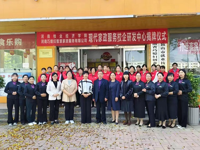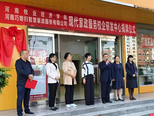 10月15日,我校科学技术处副处长张红霞、williamhill英国党委书记胡红林、副院长王伟琴、副院长魏景霞、家政学教研室主任张会霞等一行前往河南巧媳妇智慧家政服务有限公司举行“校企研发中心”挂牌仪式,并就下一步校企研发工作举行座谈交流。研发中心的成立得到了平顶山市、郏县相关政府部门的大力支持,平顶山市妇联主席刘军慧,郏县妇联主席梁静、县商务局局长王星培、县人社局局长马峰、县人社局就业服务中心主任杨晓东等参加了交流研讨活动。