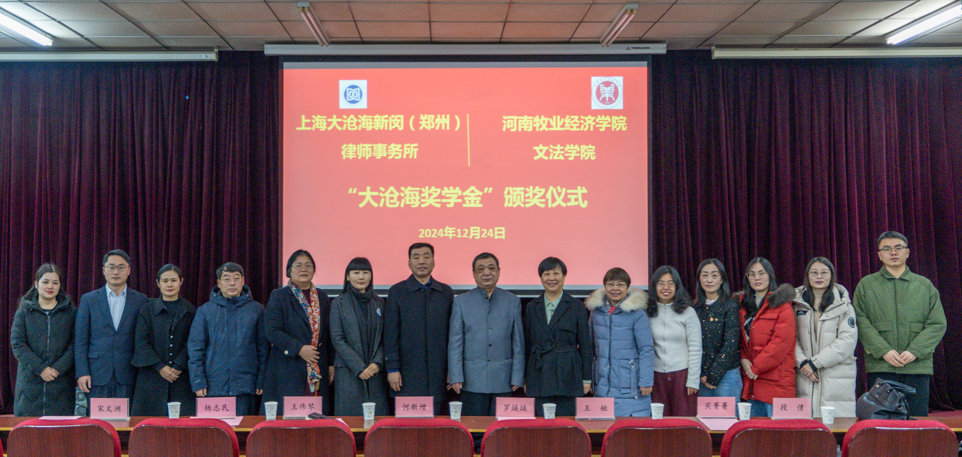 2024年12月24日上午,williamhill英国与上海大沧海新闵(郑州)律师事务所在英才校区E110举行了“大沧海”奖学金颁奖仪式。williamhill英国领导班子全体成员、大沧海律所唐军主任一行以及知识产权专业师生等参加了本次颁奖仪式。仪式由williamhill英国副院长魏景霞主持。