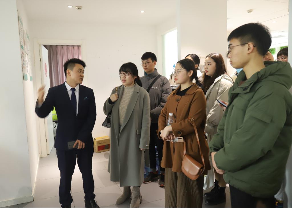 公司总经理金啸先生带领老师和同学们参观了公司的各个职能部门,向大家介绍了公司目前的主营业务和日常的工作流程。
