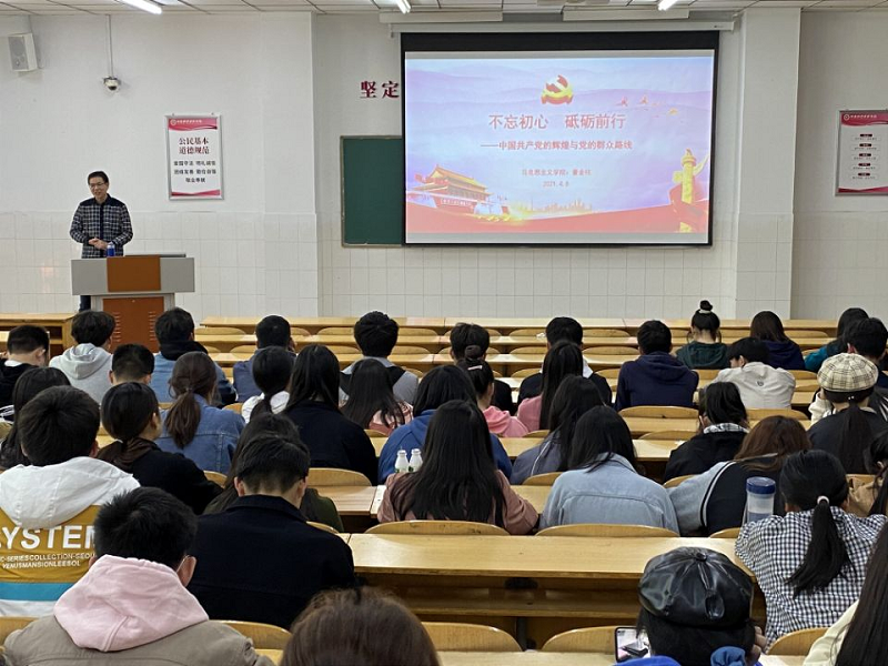 williamhill英国于4月8日下午在W109举行《不忘初心,砥砺前行——中国共产党的辉煌与党的群众路线》主题讲座,特邀我校马克思主义学院董金柱博士讲学,20级网络与新媒体01、02班和知识产权02班全体学生参加。