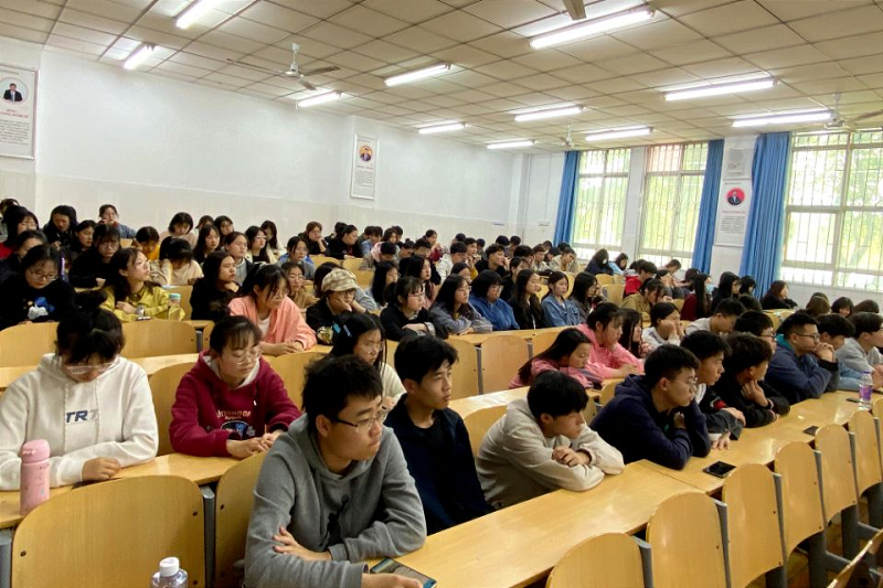 接着,董博士讲到党的群众路线。他提问到什么是群众路线,同学们积极发言、现场气氛热烈。群众路线是毛泽东思想三个活的灵魂之一,是党的生命线和根本工作路线。中国共产党始终坚持群众路线,把群众的诉求收集起来,由此制定出相应的措施去解决,满足群众的需要。最后,他指出历代领导人都对群众路线高度重视,党就是为了人民群众的福祉而存在,是人民的公仆。