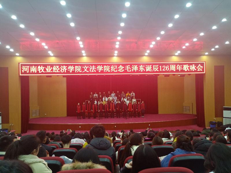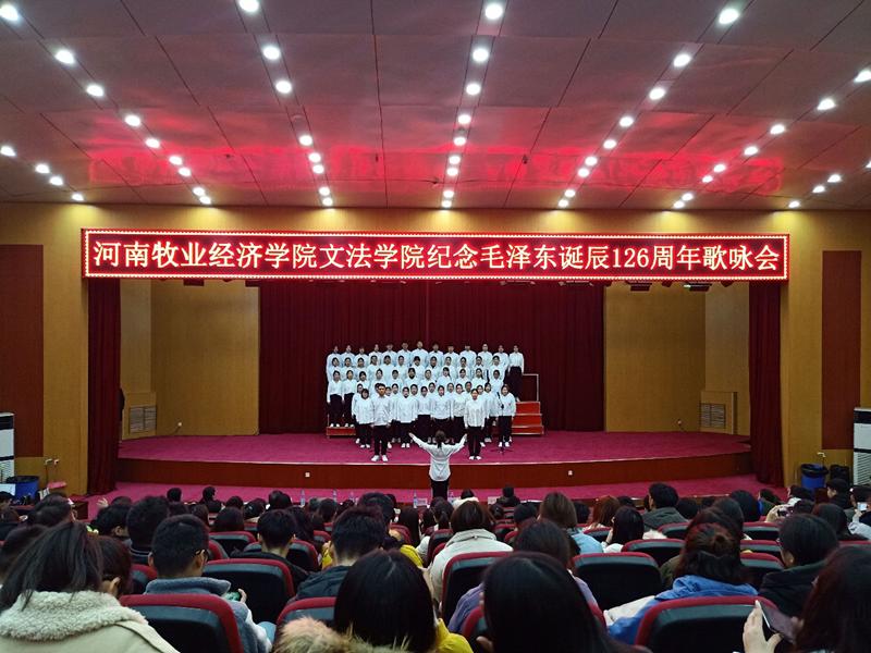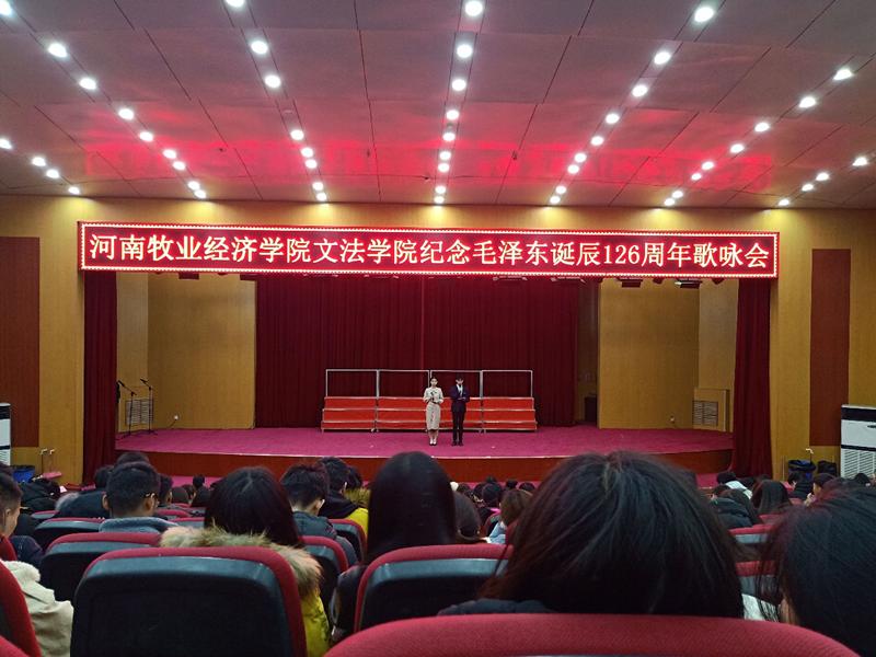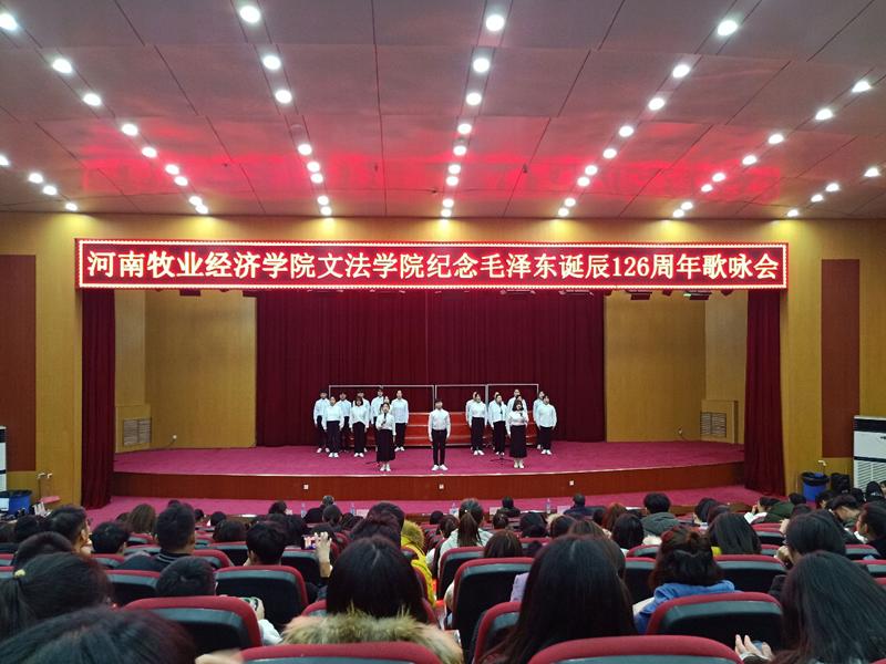 12月26日下午,williamhill英国在学术报告厅隆重举办纪念毛泽东诞辰126周年歌咏会。williamhill英国党委书记胡红林、院长李国英和其他班子成员、全体教师、以及18和19级的全体同学参加了活动。
