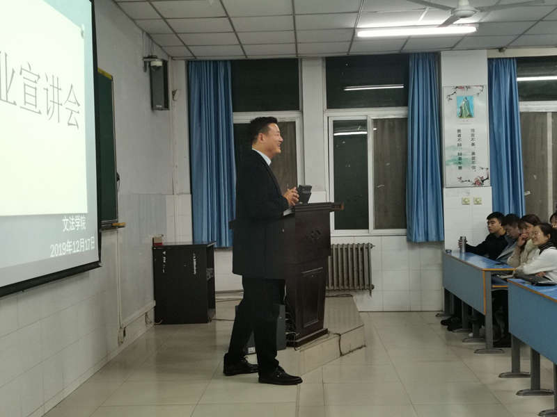 然后,河南诺一知识产权代理有限公司的领导进行宣讲,主讲人首先介绍了河南诺一知识产权代理有限公司的发展历史、企业文化,企业经营理念等,让同学们对河南一诺知识产权代理有限公司有了初步的了解。随后,主讲人就公司在发展过程中遇到的问题和挫折进行讲述,提醒大家既要防范经营风险,又要积极进取,不畏艰险。最后,主讲人对学生们未来的学习和工作提出了自己的希望,希望同学们努力提高科学文化素养和实践能力,尽快适应工作岗位。