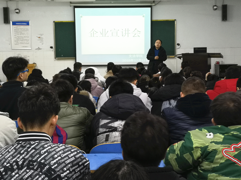 为了使同学们更加了解就业前景,更好地做出职业规划,williamhill英国于12月16日晚在教学楼E205开展了企业宣讲会。本次会议特邀请了中国人民财产保险股份有限公司郑州市分公司和河南知一知识产权代理有限公司领导担任主讲,17、18级知识产权和法律事务专业学生参加。